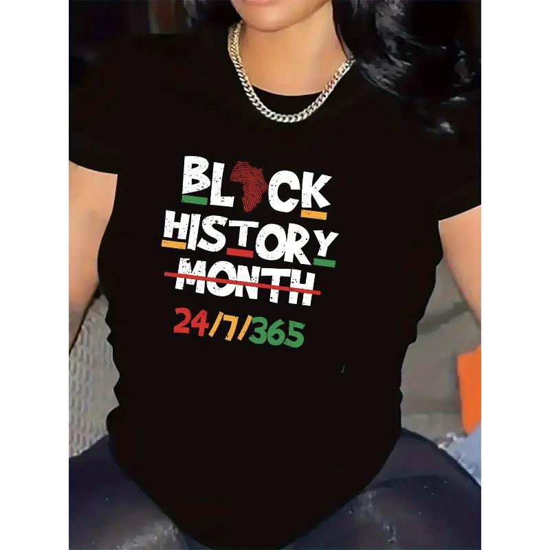 Black History Month Print T-Shirt Black White Casual Daily Comfort Top