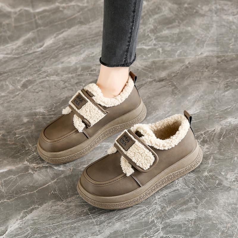 Velvet Winter New British Style Platform Beanie Small Leather Shoes Pregnant Women Warm Cotton Shoes