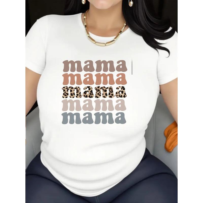 European Size Women's White Oversized "Mama" Leopard Print T-Shirt - Soft Stretch Short Sleeve Round Neck Top, Casual & Workout Shirt with Mama