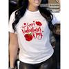 Womens Red Rose Heart Print T Shirt Black Round Neck Short Sleeve Valentine's Day Romantic Casual Top All Season Comfortable Machine