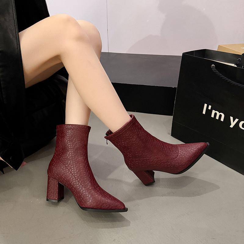 French New Side Zipper Low Slim High Heel Pointed Short Boots Autumn and Winter Retro Temperament New Thin Short Boots