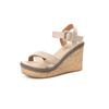 New Slope Heel One-word Buckle Suede Open-toed Sandals Waterproof Table Heightening Belt Buckle Europe and America