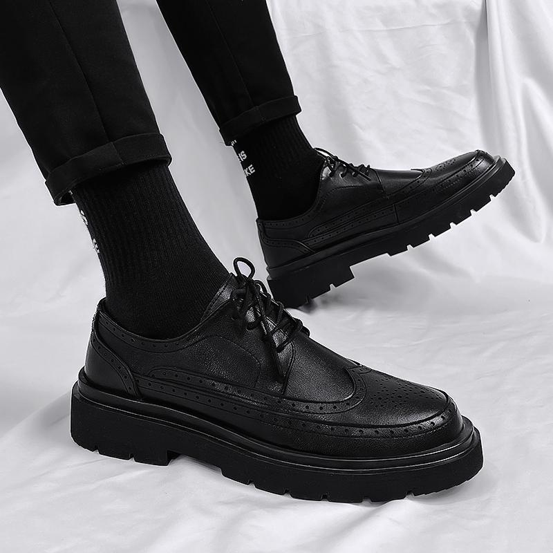 Brock Leather Shoes Autumn Best Man British Business Suit Casual Shoes Black Low Top Martin Shoes