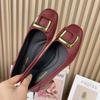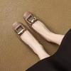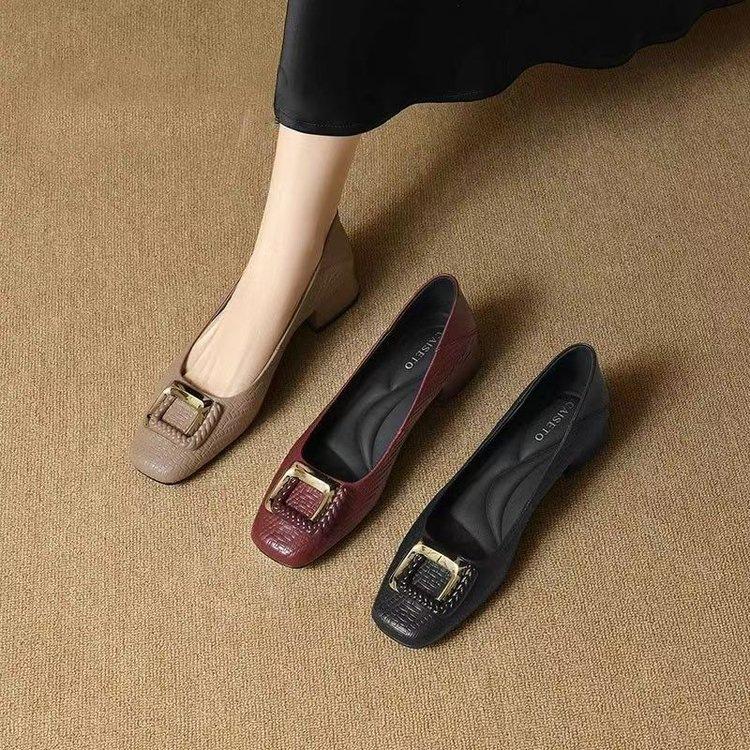 French Soft Leather Retro Shallow Mouth Single Shoes Autumn New Square Head Shoes Soft Sole Wear-resistant