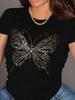 Butterfly Print Crew Neck T-shirt, Short Sleeve Casual Top for Spring & Summer, Women's Clothing European Size