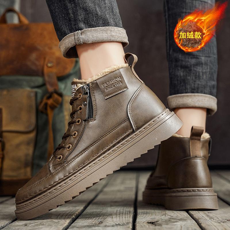 Winter Velvet and Cotton Light Luxury High-top Leather Shoes Casual British Martin Board Shoes