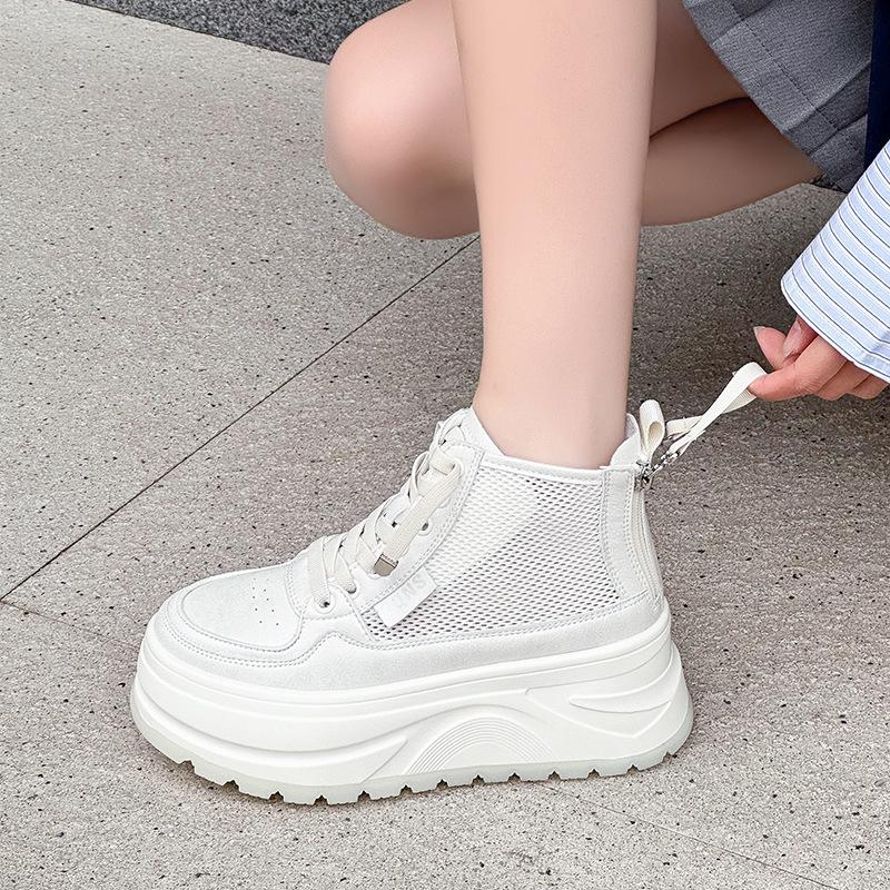 Thick-soled Muffin High-top Shoes New Mesh Breathable Casual Comfortable Small Board Shoes In Summer