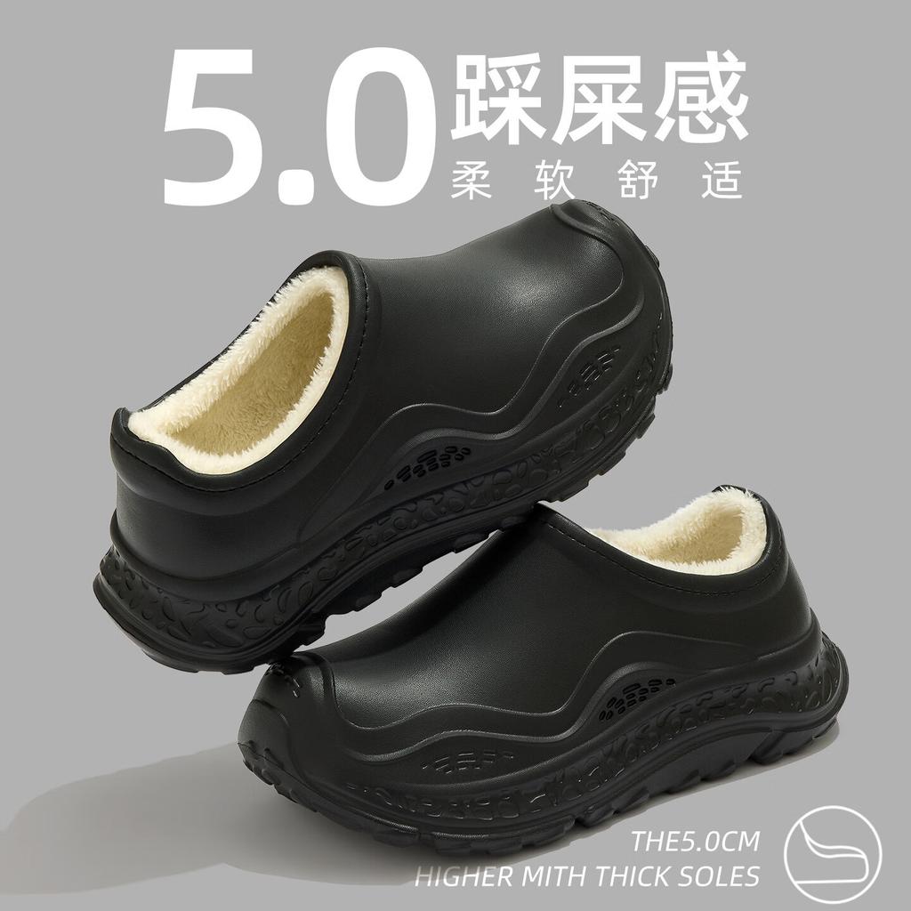Waterproof Cotton Slippers Autumn and Winter New Thick Bottom Heightening Plush Thermal Bag and Cotton Slippers