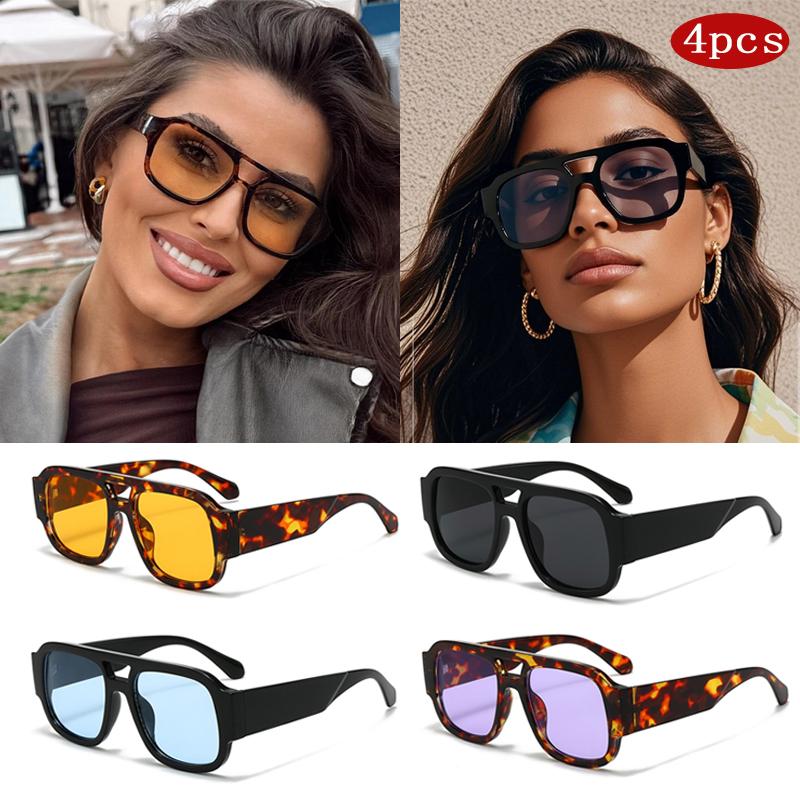4pack Square Sun Glasses Women Large Frame Double Bridges Candy Color Wide Legs Outdoor Shades Eyewear
