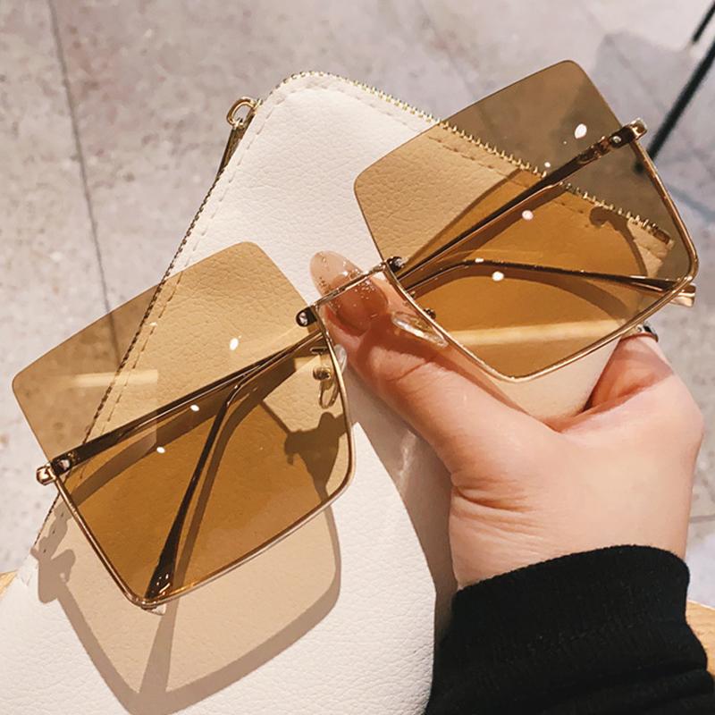 Luxury Designer Square Sunglasses Women Vintage Retro Oversized Sun Glasses Big Frame Metal Oculos De Sol Fashion