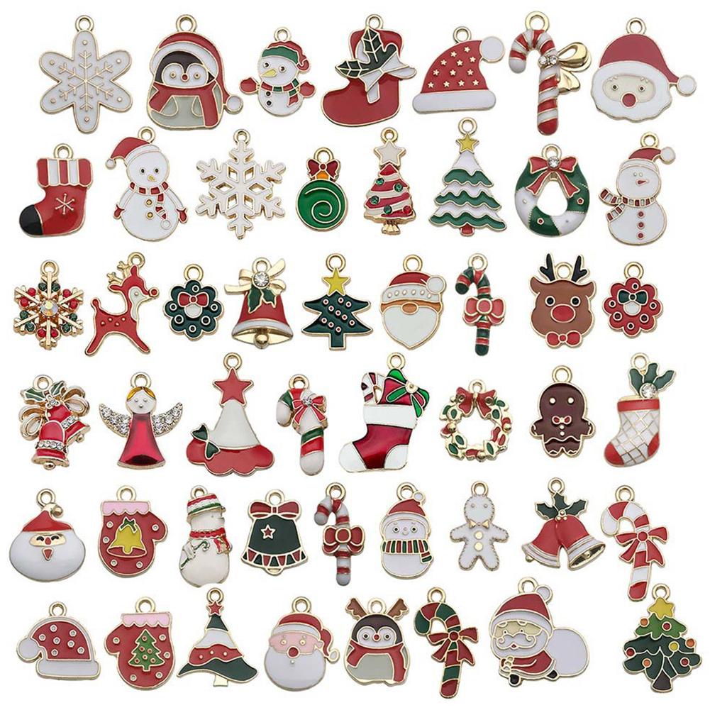 Mix 50 Pieces Christmas Charms for Jewelry Making,Assorted Alloy Enamel Xmas Pendants for DIY Necklace Earrings,Xmas Tree Charms