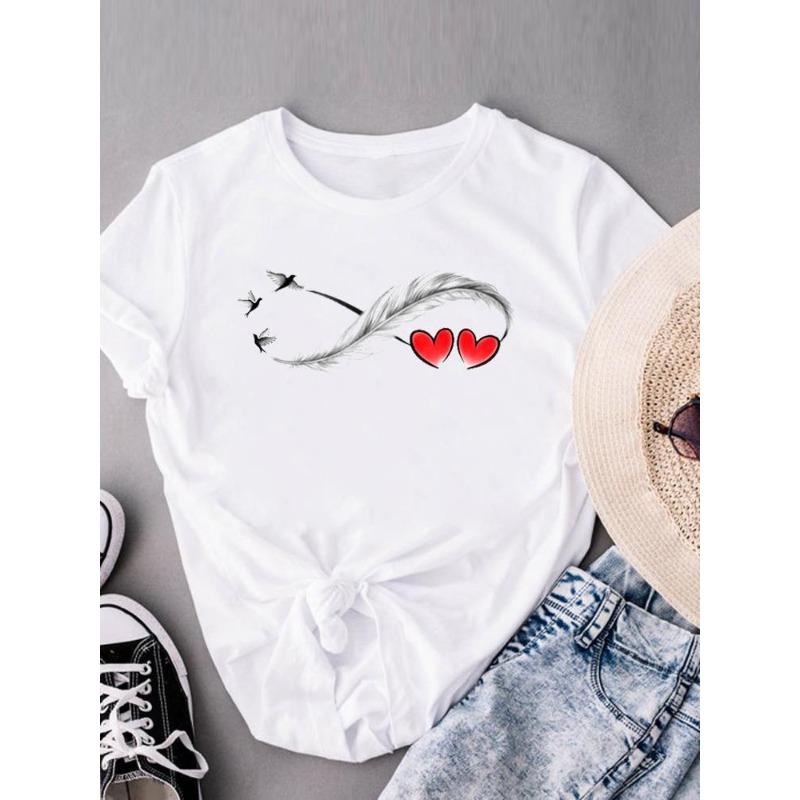 (European Size) Sweet Love Heart Women Tee Top Style Trend Cute Clothing Casual Short Sleeve Fashion Print Lady Tshirt Female Graphic T-shirts