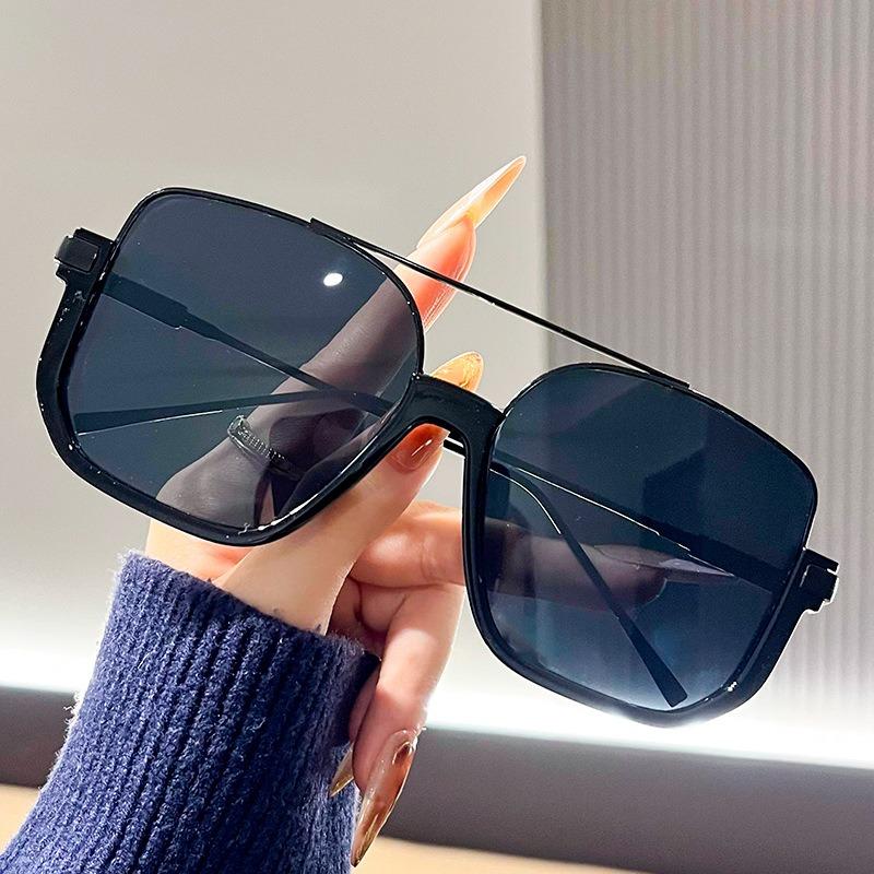 Double Beam Tea-Colored Sunglasses Retro Oversized Frames Transparent Black for Men and Women High-End Fashion