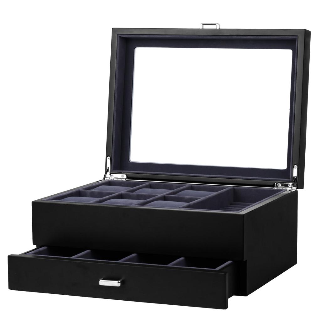 Baskiss Luxury Wooden Watch and Jewelry Storage Holds 6 4 and Collectible 2-Layer Case, Watch, Eyeglasses, Box, Watches, Sunglasses, Accessories,