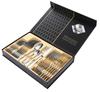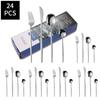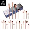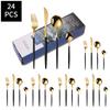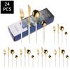 24pcs Gold Dinnerware Set Stainless Steel Steak Knife Fork Coffee Spoon Teaspoon Flatware Dishwasher Safe Kitchen Tablewar