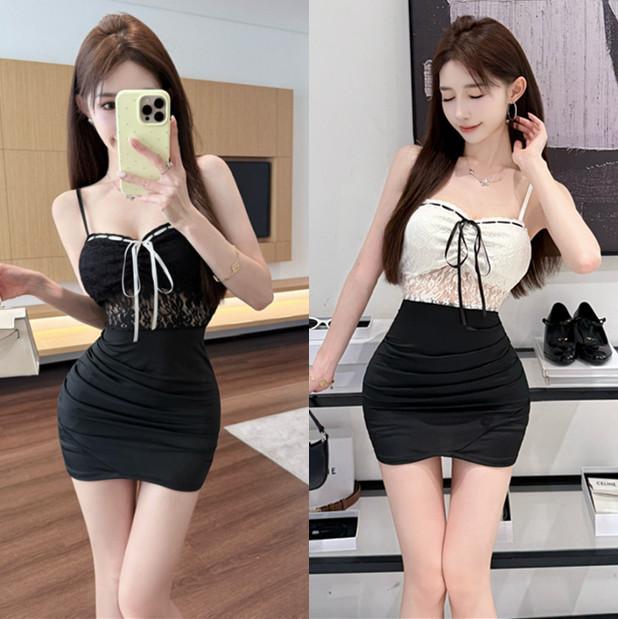 Sexy Pure Desire Temperament Slim Skirt Design Sense Perspective Lace Splicing Suspender Dress