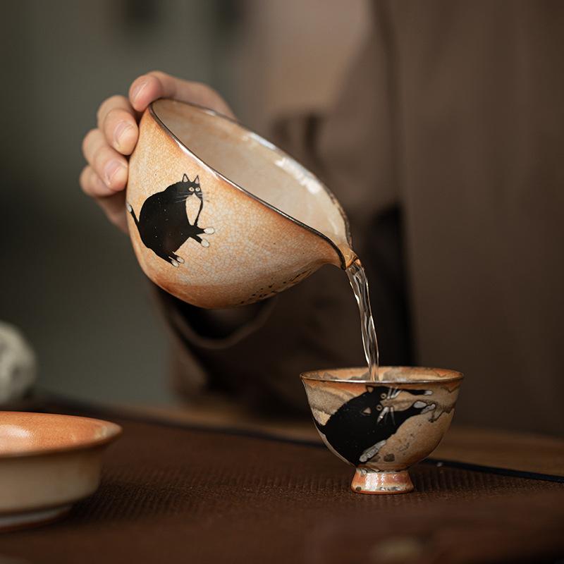 Retro Hand-Painted Teacup Japanese Zhiye Pottery Tea Pitcher Handmade Cat Household Cup Chinese Kungfu Tea Ceremony Teaware