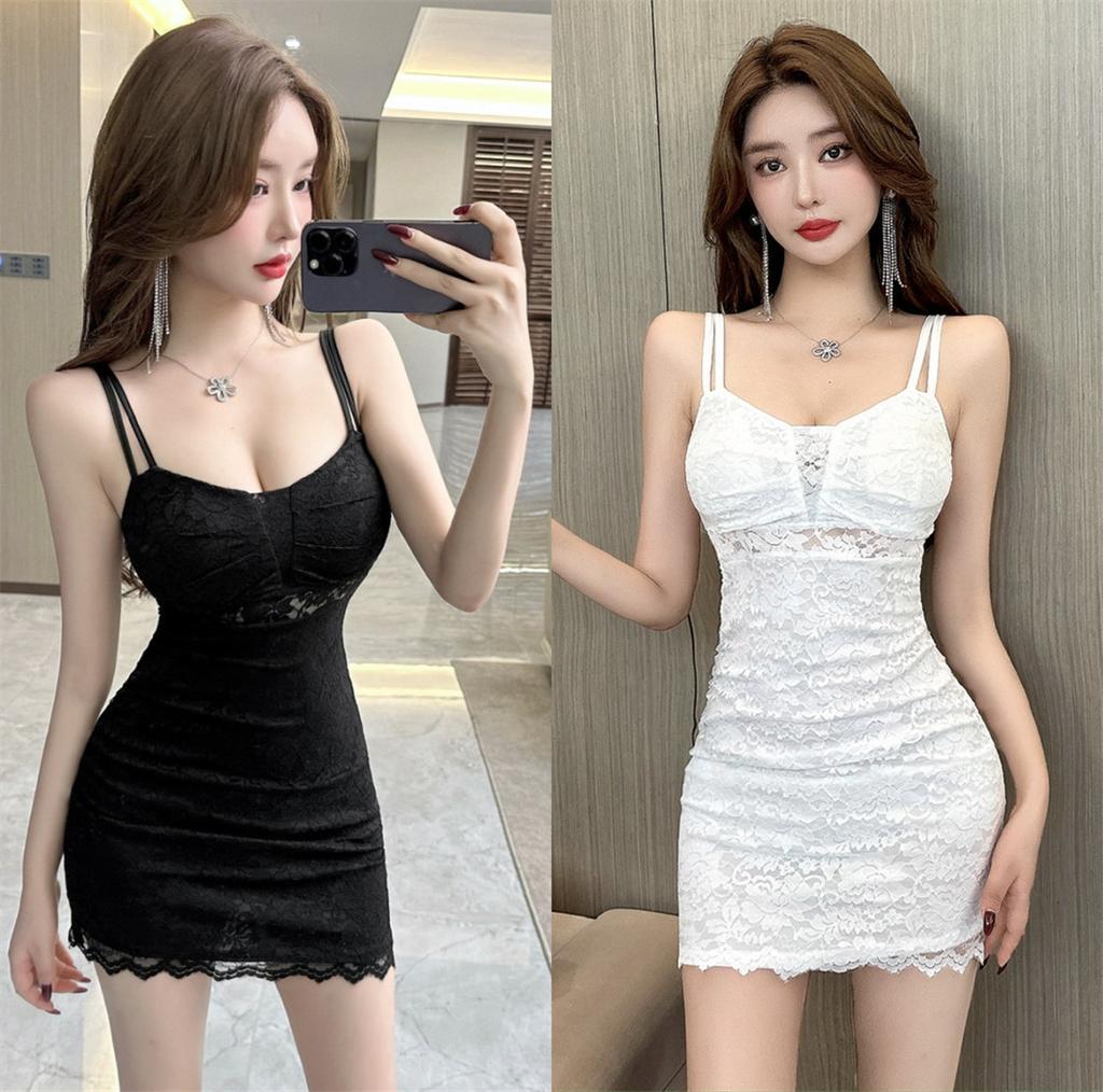 Pure Desire Wind Low-cut Sexy Suspender Dress Women's Clothing Slim-fitting Lace Hollow-out Thin Hip-wrapped Short Skirt