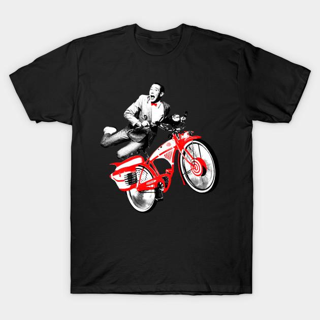 Men Black Print T-shirt Pee Wee Herman'S Big Adventure Bike No-Cut Transfer Paper Print Cotton Tshirt
