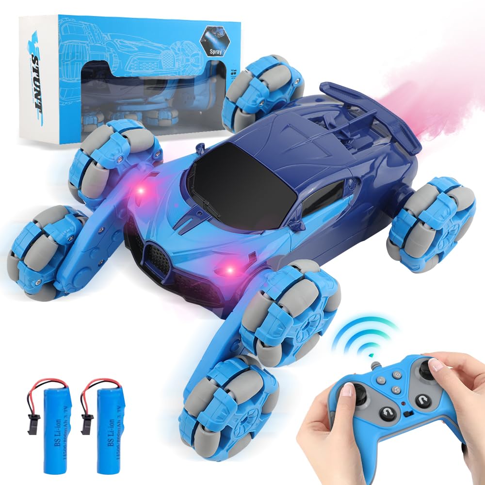 FlyCreat Remote Control Car for Kids - Spray Function, 2-Piece Set, 6-Wheel Drive, Double-Sided Driving, Wireless Control, 360-Degree Flip and