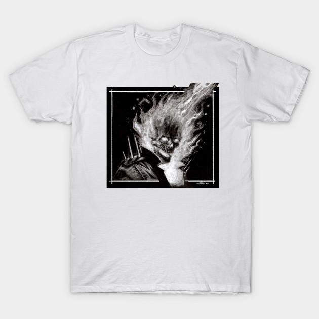 Men Black Print T-shirt Ghost Rider No-Cut Transfer Paper Print Cotton Tshirt