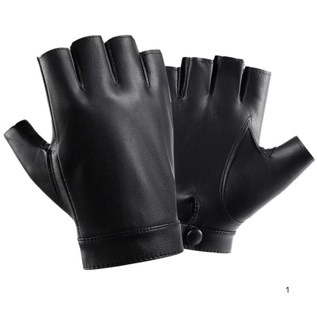 VIEAURA Fingerless PU Leather Gloves for Cosplay, Rock, Punk, and Drivers, Black