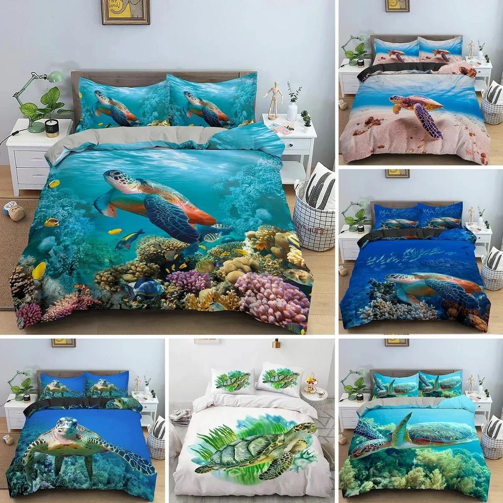 3D Sea Turtle Beddings Set Psychedelic Animal Duvet Cover Comforter Covers Single Twin Full Queen King Polyester Quilt Cover