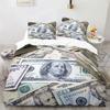 3D Modern Money Bedding Set Dollar Motif Printed Duvet Cover Vivid Comforter Cover 3 Pieces Money Pattern Funny Soft Bed Set