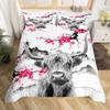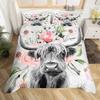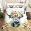 Highland Cattle Floral Cow Yellow Sunflower Animal Bedding Set Boys Girls Twin Queen Size Duvet Cover Pillowcase Bed Kids Adult