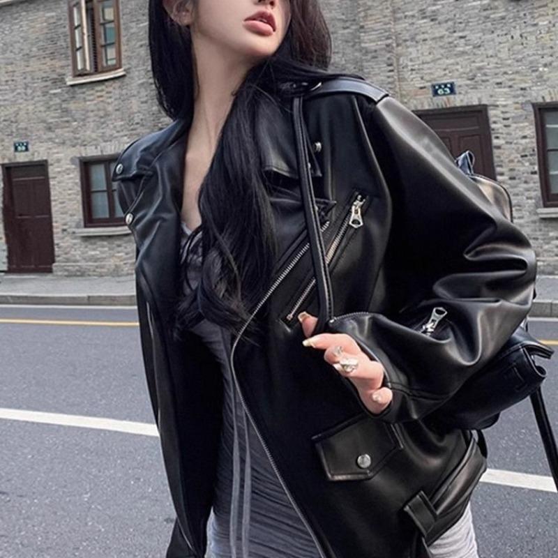 Black Suit Collar, Leather Jacket, Women's Niche Design Sense, Wear Ruffian Handsome Motorcycle Jacket, Trendy Top
