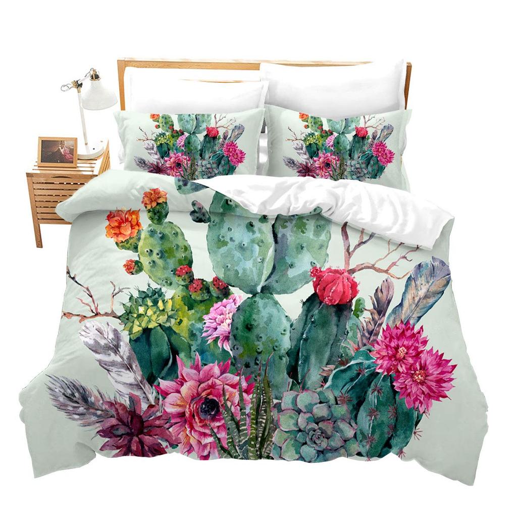 Bright Cactus Duvet Cover Set Full Queen For Girls Boys Green Plants Succulents Bedding Set Nature Art Soft Chic Comforter Cover