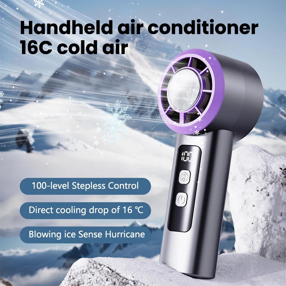 Handheld Mini High-Speed Turbine Fan with Ice Compres 100-Speed Wind Stepless Speed Adjustment LED Display Portable Cooling Fan