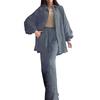 The set includes a long-sleeved lapel top and wide-leg trousers that offer a loose fit suitable for most body shapes. Crafted from high-quality blended fabric, this suit is slightly elastic, soft, and skin-friendly, ensuring comfort during extended wear.