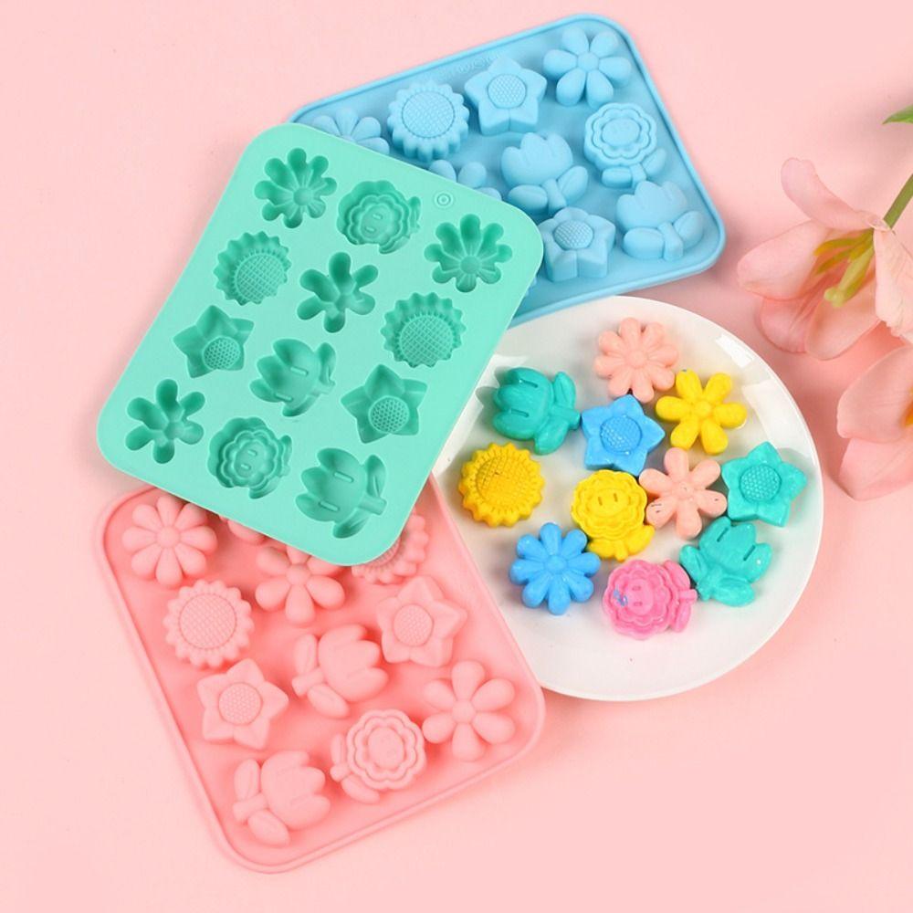 New Silicone Flower Shaped Mold Pink Blue Green 12 Cavity Chocolate Cookies Mold Handmade Baking Tool Home Kitchen