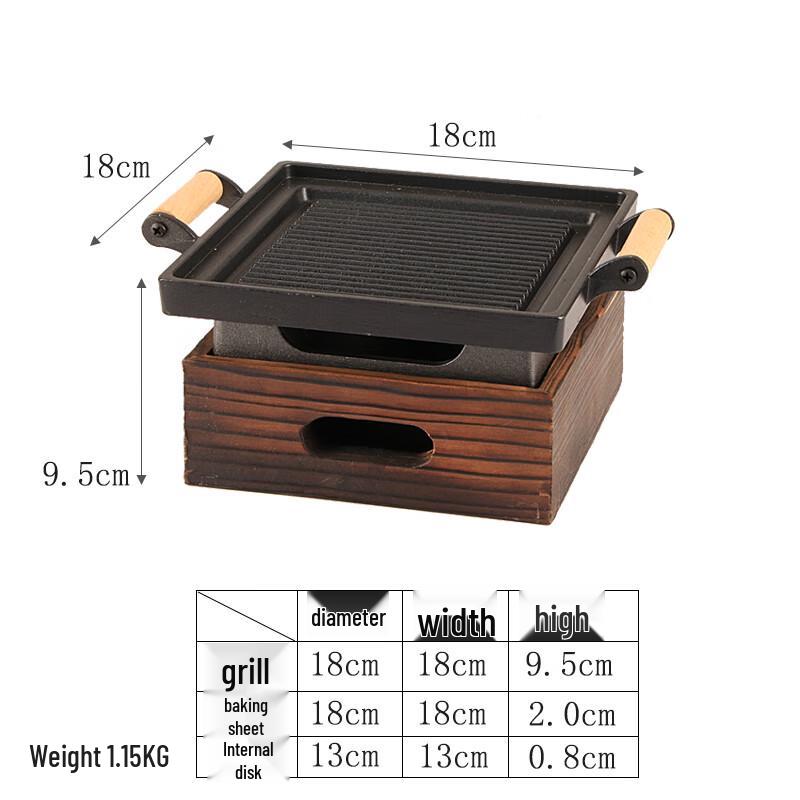 Korean Style Solid Alcohol BBQ Grill with Wooden Frame & Handle