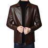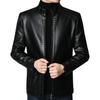 Men Jacket Faux Leather Solid Color Stand Collar Smooth Thick Warm Long Sleeve Zipper Neck Protection Motorcycle Windproof Cool Autumn Winter Jacket