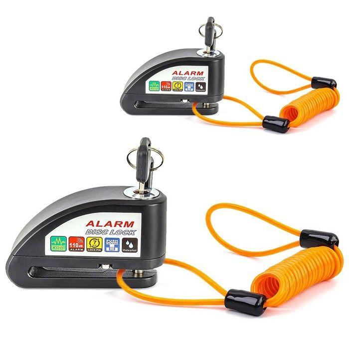 2x Antivol bloque disque alarme moto + câble de rappel 110dB noir Discount Set