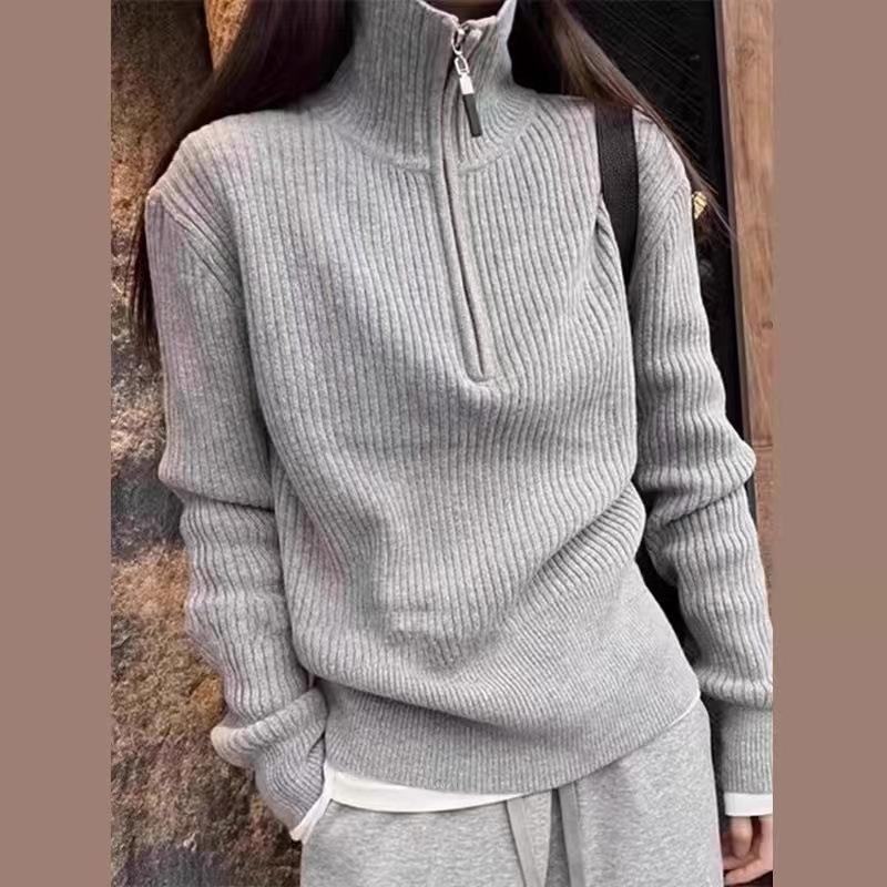 Grey Half-zipper Turtleneck Sweater Bottoming Shirt Women's New Spring and Autumn Long-sleeved Knitted Sweater Top