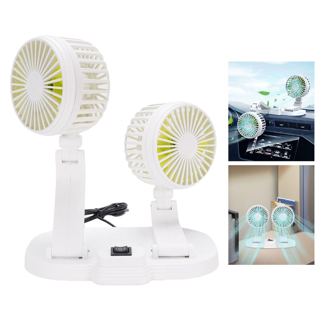 5V USB Car Cooling Fan 2 Speed Wind Quiet 360 Deg Rotatable Portable Dual Head Desk Fan for SUV RV Truck