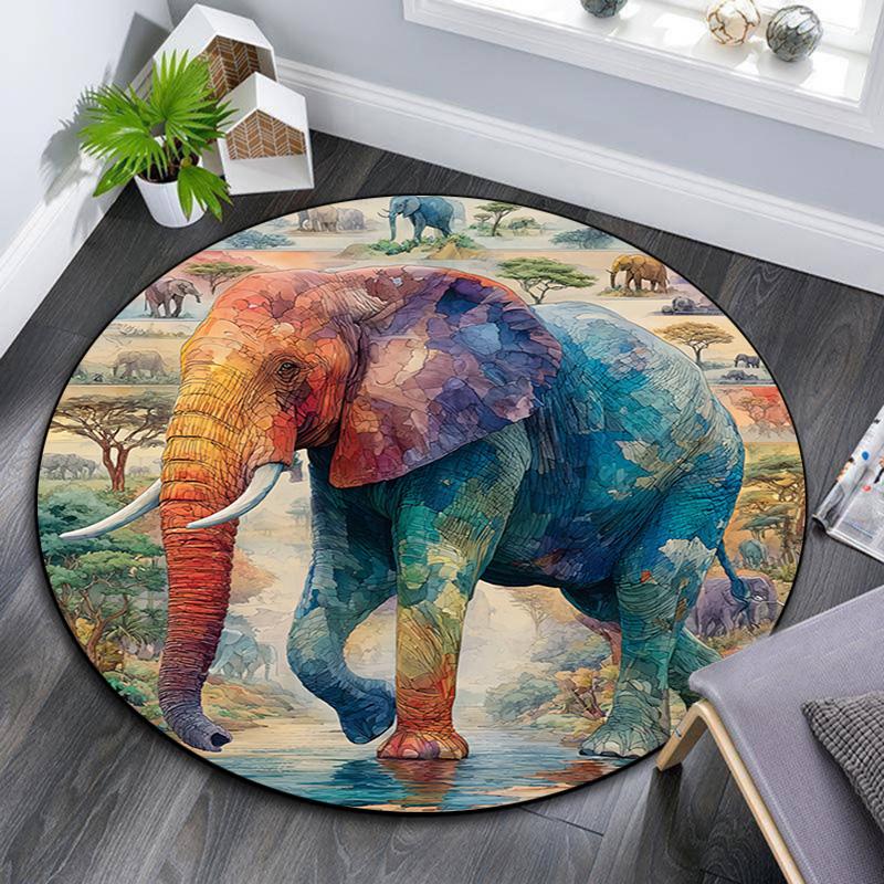 Elephant Round Area Rug,Carpet Rug for Living Room Bedroom Sofa Playroom Decor,Non-slip Floor Mat