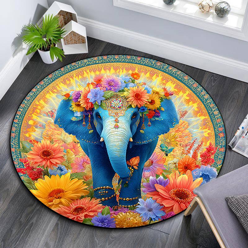 Elephant Round Area Rug,Carpet Rug for Living Room Bedroom Sofa Playroom Decor,Non-slip Floor Mat