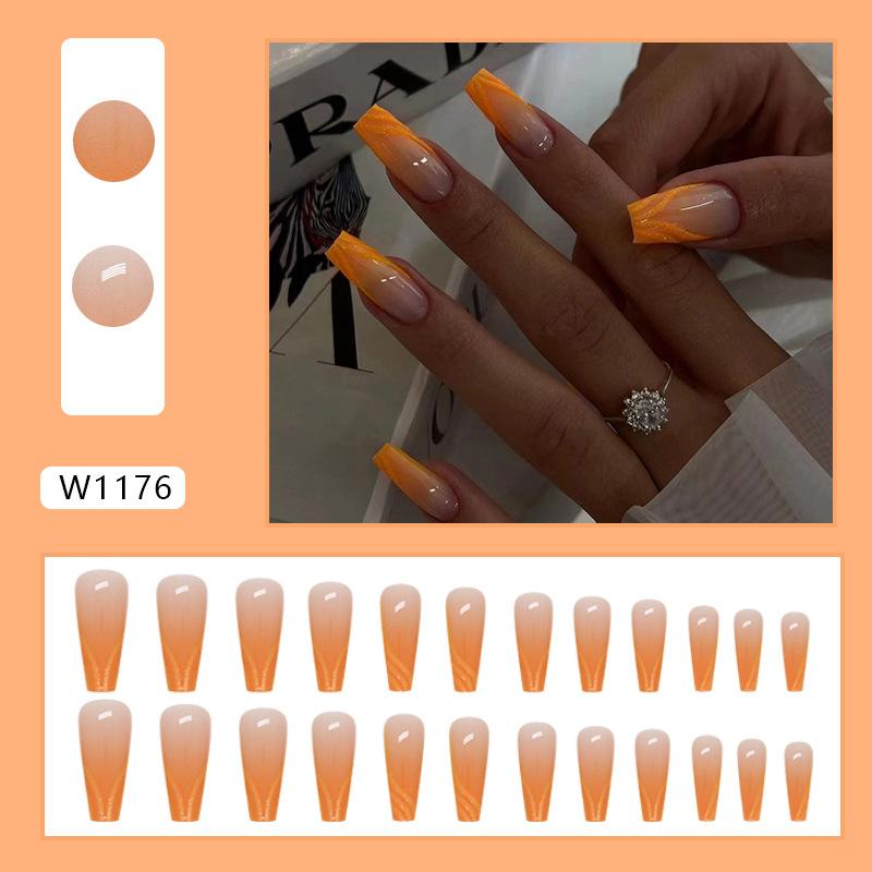 Long European and American Gradual Change Sunset Orange Line Manicure Fashion European and American Ins Wind Wear Armor