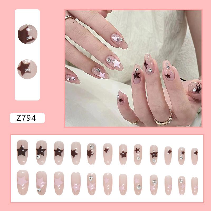 Oval Double Color Pretty Girl Star Pile Diamond Manicure European and American Ins Style Fashion Wear Nail Finished Nail Art