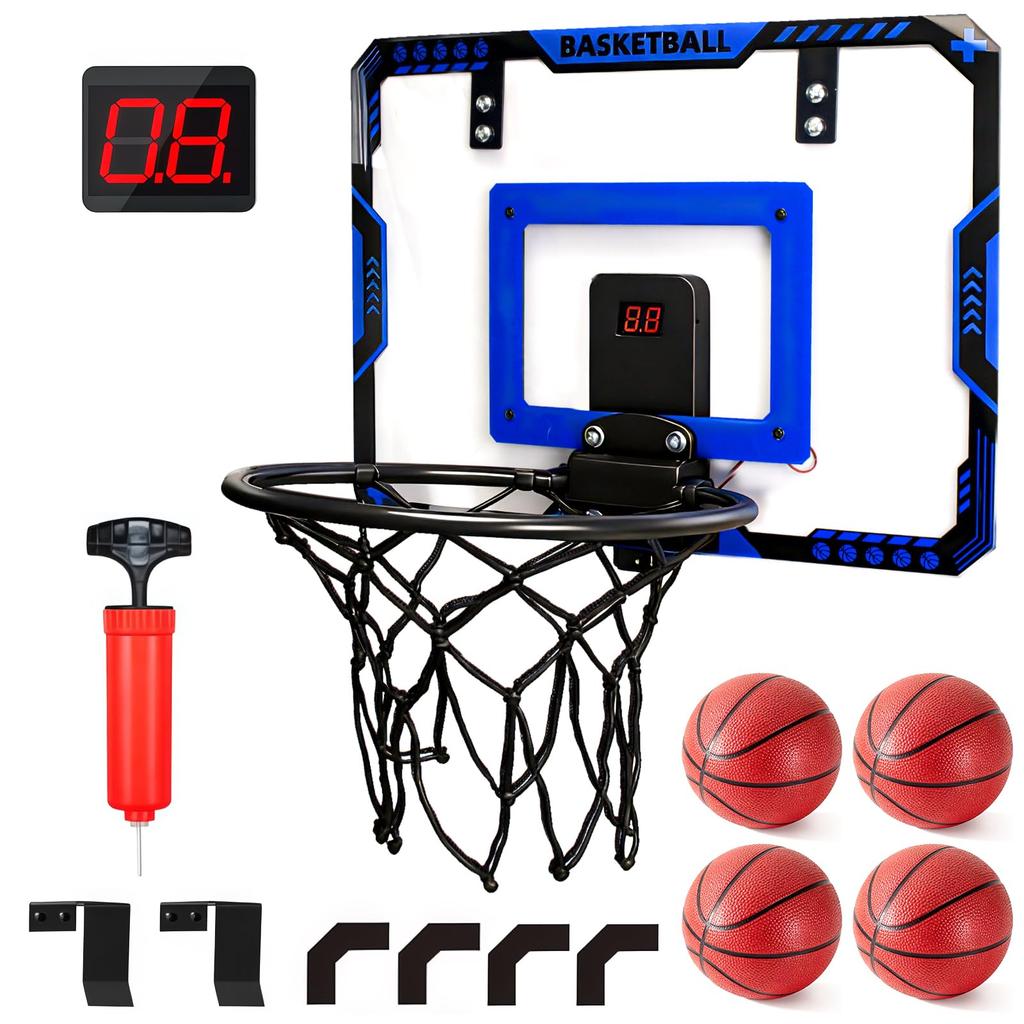 Kids' Basketball Hoop, IndoorOutdoor Toy with Automatic Scoring, Sound Effects, Hanging Door, Holds 4 Basketballs, Folds for Easy Storage,