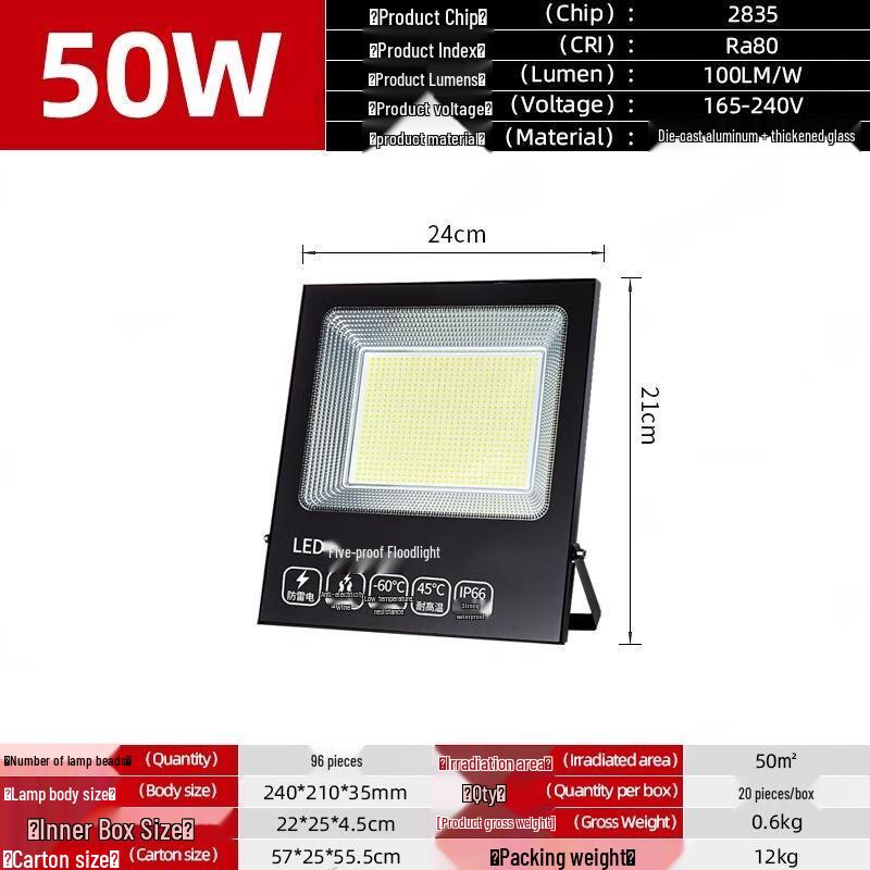 50W Square LED Outdoor Floodlight - IP66 Waterproof