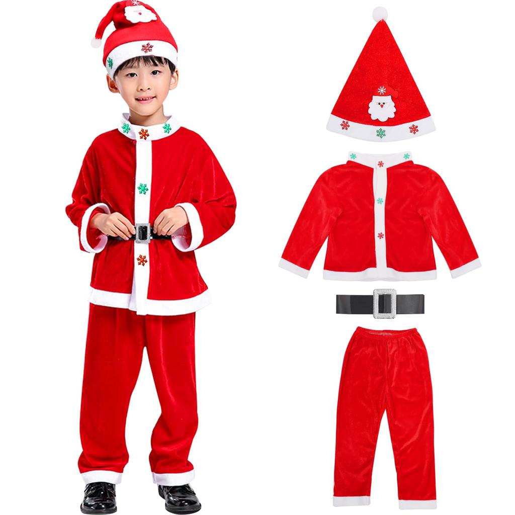 [HTPARY] Santa Cosplay Kids' Christmas Costume with Hat for Boys and Girls, Perfect for Recitals and School Festivals