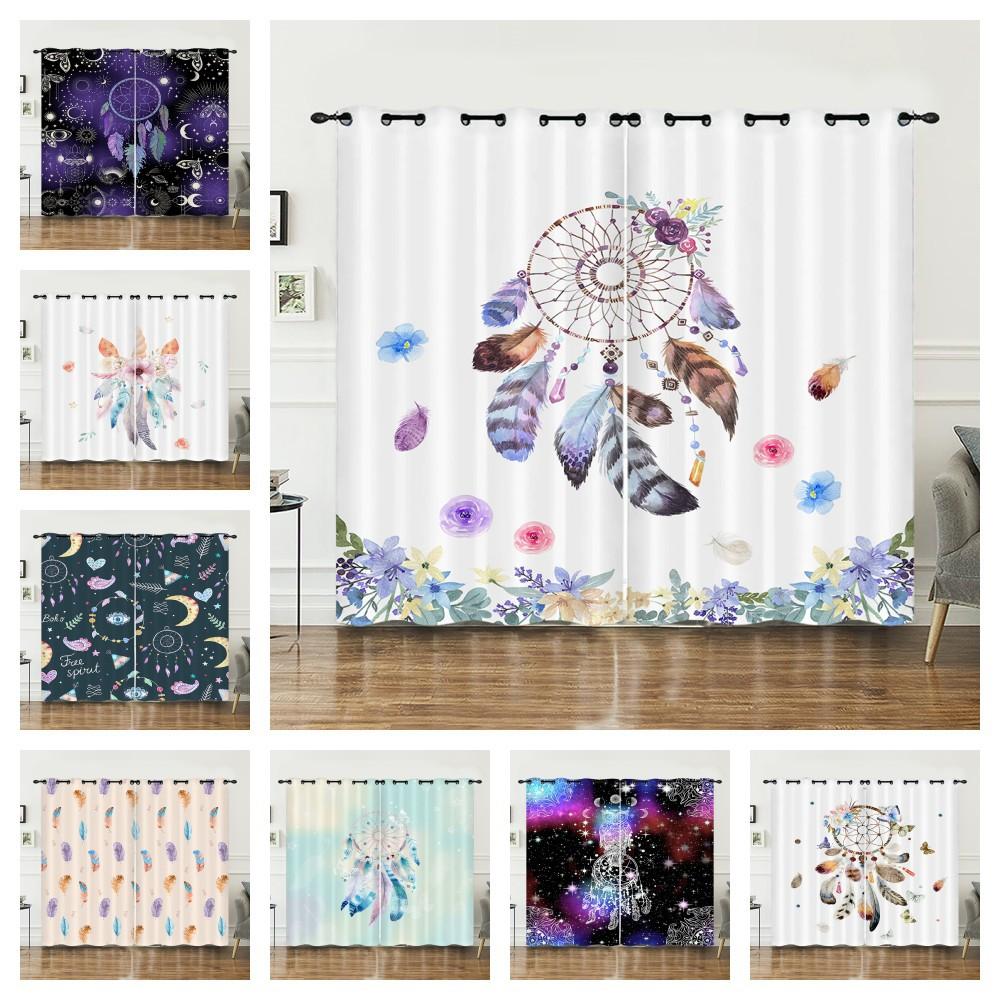 Curtain Dream Catcher Feather 3D Digital Printing Blackout Curtain Punching