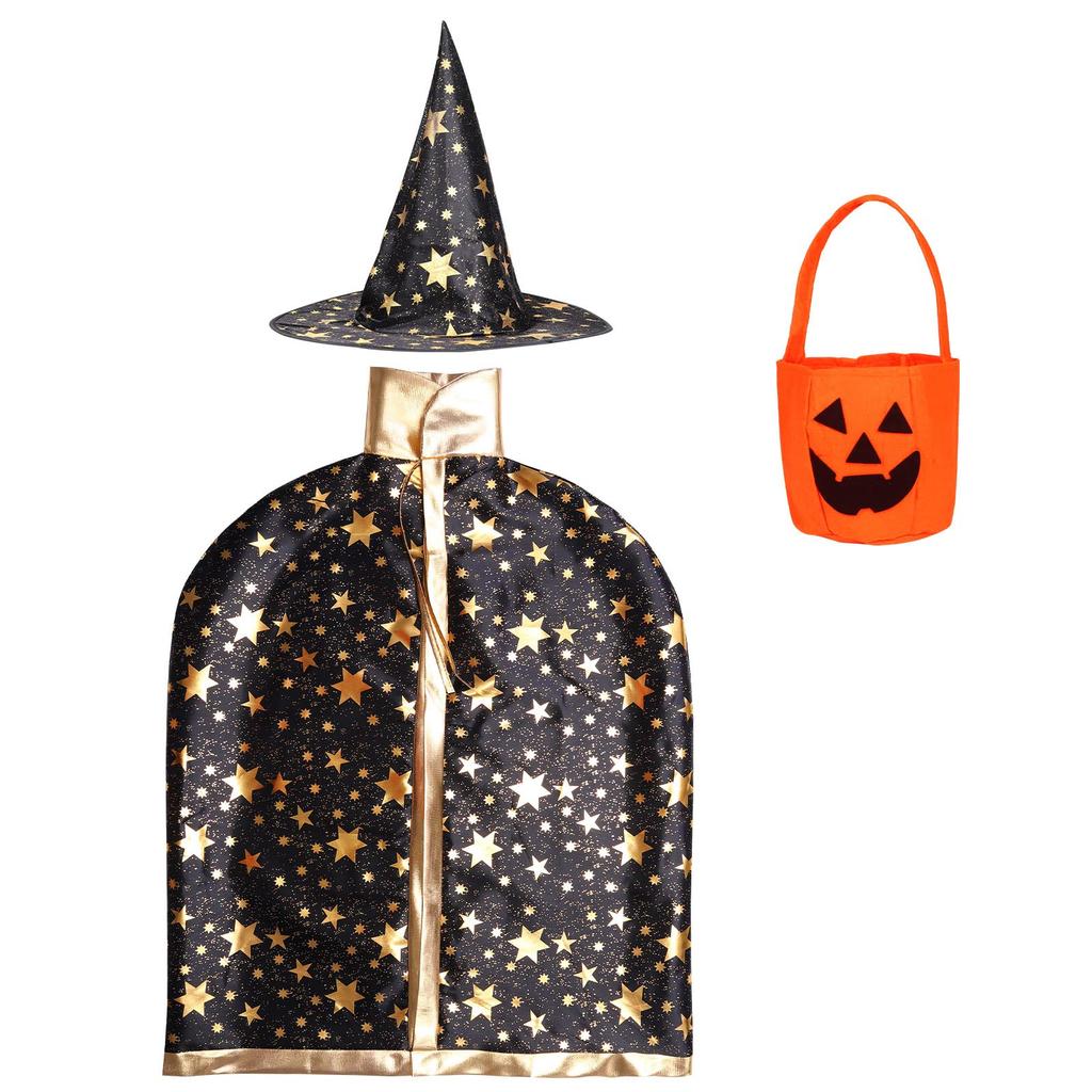 Moerstar Halloween Witch Costume Set, 3-Piece Set for Kids, Includes Cape, Hat, and Pumpkin Bag, Unisex, Perfect for Halloween, Christmas, Parties,