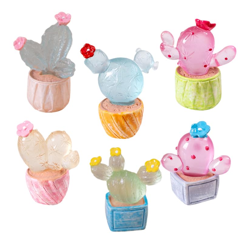 JOINPAYA Miniature Cactus Figurines, Set of 6, Glow-in-the-Dark Resin, for Interior Decoration, Car Decor, Dollhouse, Terrarium, Bonsai, Miniature