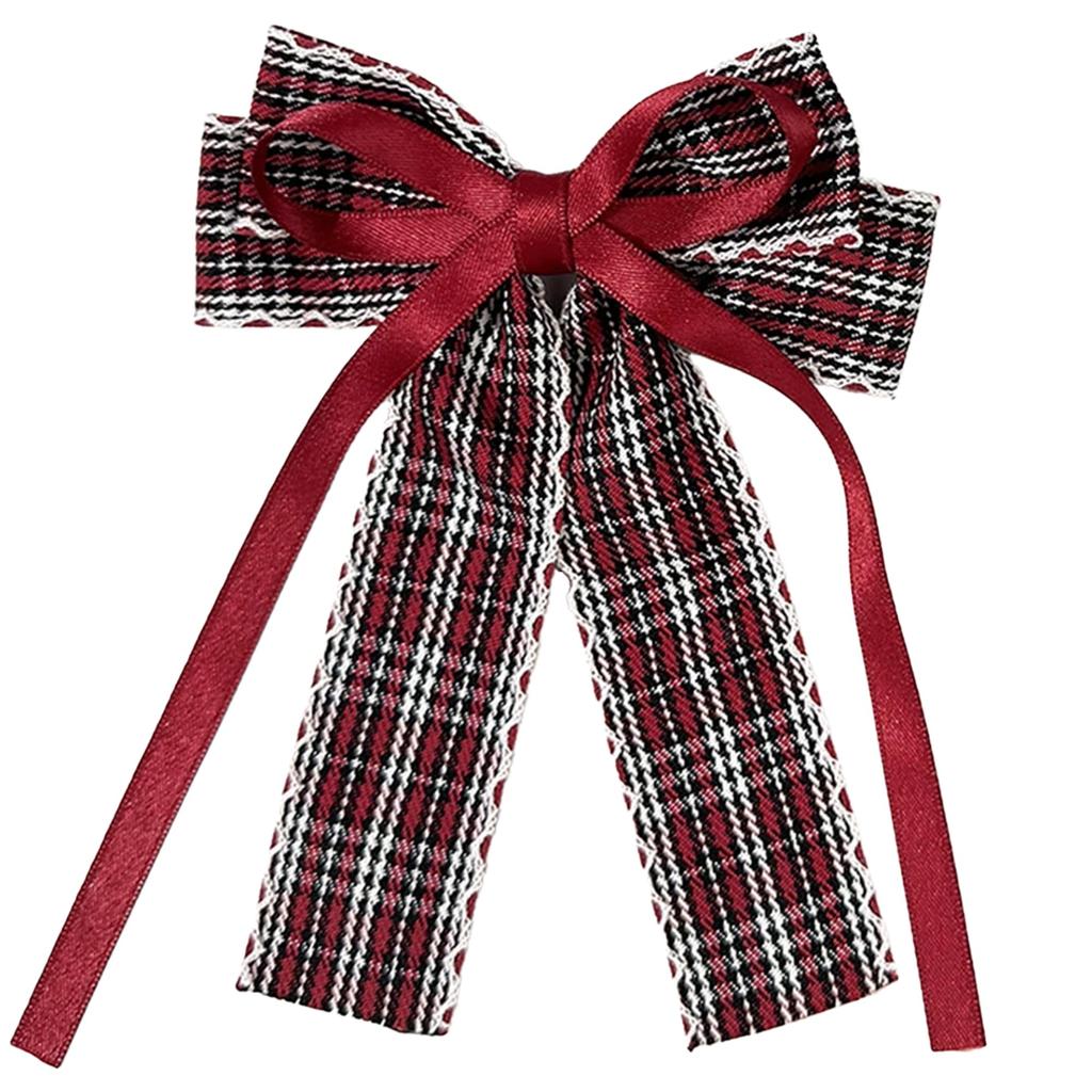 Tartan Check Big Ribbon Hair Clip, Red, Hair Accessory, Gift for Girls and Women, Hair Ornament [Item]